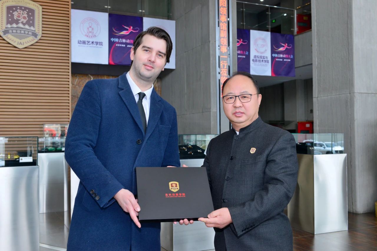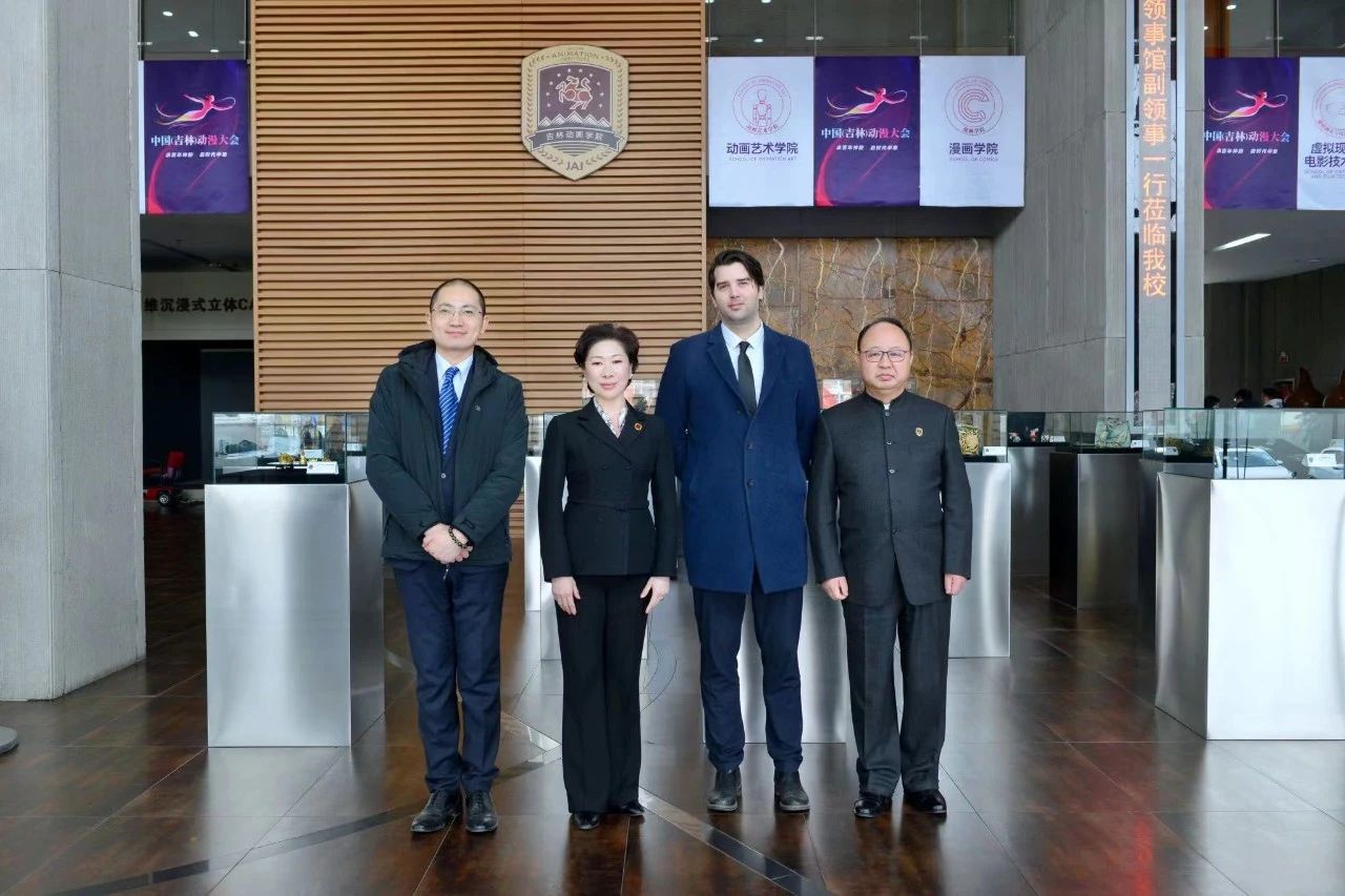 随后,罗伊可先生一行参观了学校校史馆、吉林国际动漫博物馆、学研产一体化创作成果展厅。在参观过程中,罗伊可先生对万象城官网取得的办学成果及国际化愿景表示赞赏,并对万象城官网师生原创作品《青蛙王国》表现了极大兴趣;对国际动漫博物馆所展出的艺术作品表示赞叹,特别对《西游记》的原创手稿展现了浓厚兴趣。