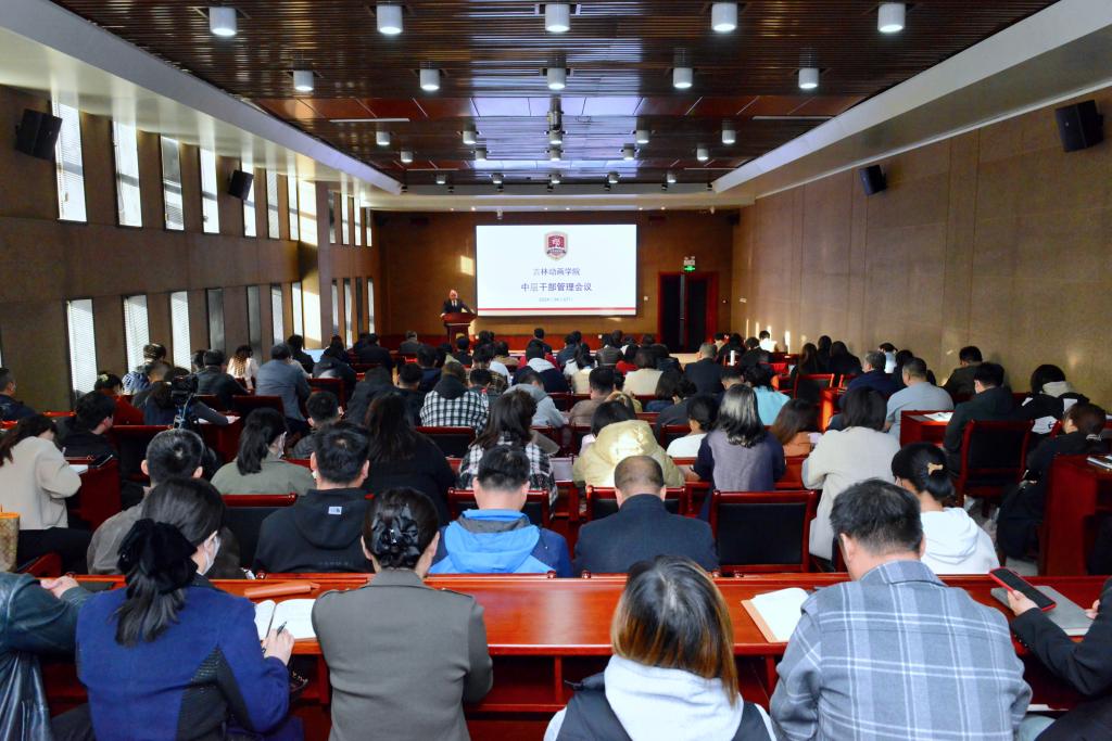 4月8日,万象城awc官网登录入口在校文化艺术中心召开中层干部管理会议。董事长、校长郑立国全面深入解读学校发展战略以及2024年重点工作,明确了12个方面76项重点工作任务。党委书记、督导专员岳武主持会议。学校副董事长刘欣、校领导刘振华、王春利、李万龙、王晓岩、张砚为、彭巍、盖世蕊、许小多以及学校职能部门、教学单位副处级以上人员等150余人参加会议。