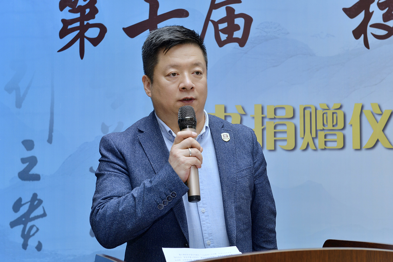 刘振华向图书馆图书捐赠者蒋平先生,向“吉动文库”捐赠者代表徐欣教授、李高华教授、赵桂静教授、姜旬恂副教授、房家庆先生颁发纪念奖杯及收藏证书。