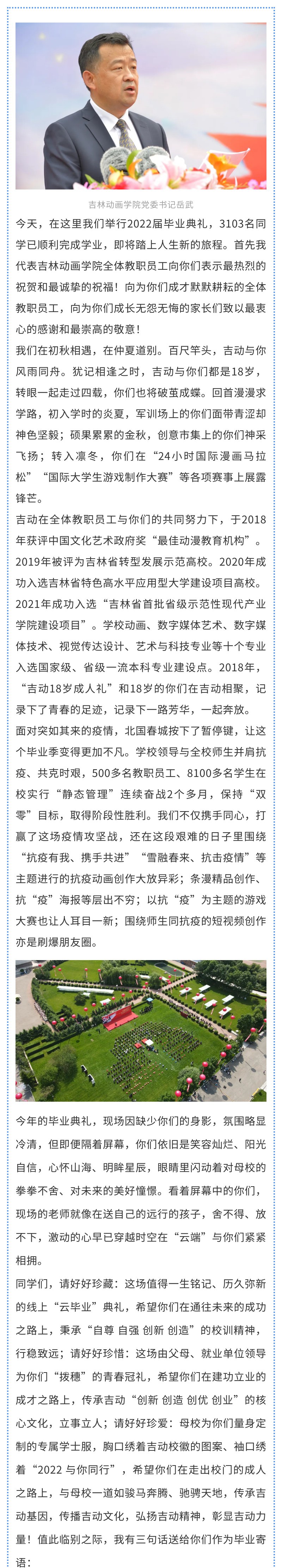 【JAI·新】担当时代重任 绽放青春力量 ----万象城awc官网登录入口党委书记岳武在2022届毕业典礼致辞