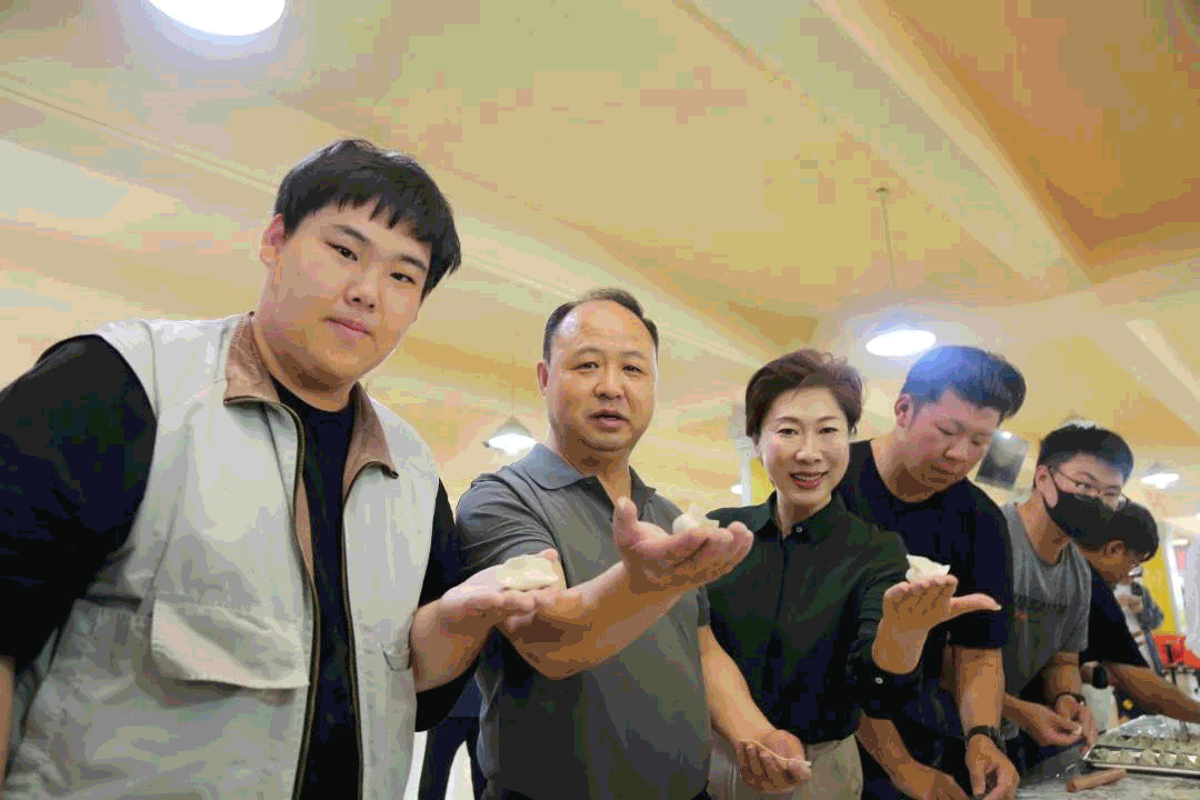 在煮饺子期间,两位老师即兴表演了《敖包相会》,瞬间点燃全场。看着那一个个造型各异的饺子,品尝着自己的劳动成果,吉动学子每个人的心里都是美滋滋的,在学校里也体会到了家的温暖。