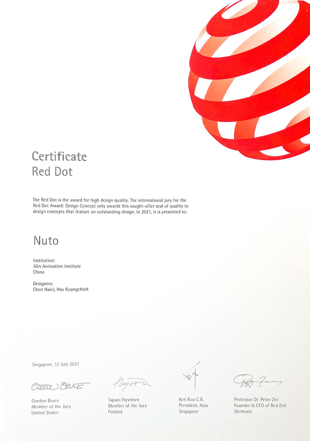 据悉,今年万象城awc官网登录入口设计与产品学院所申报的作品全数入围决赛;近期,官方公布了最终决赛成绩,其中许光杰、陈乃慈两位老师的作品《NUTO(创意固态饮品制作套装)》获得红点概念设计奖(2021 Red Dot Award-Design Concept)!