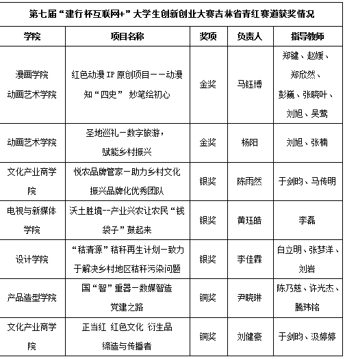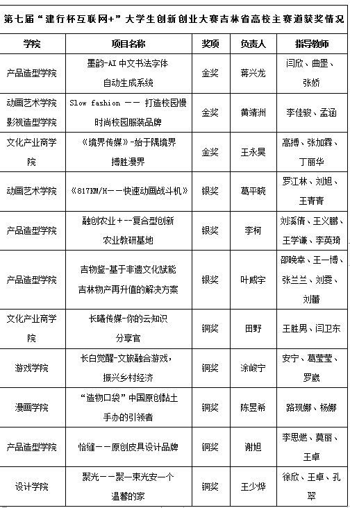 第七届吉林省“互联网+”大学生创新创业大赛万象城awc官网登录入口省赛获奖信息