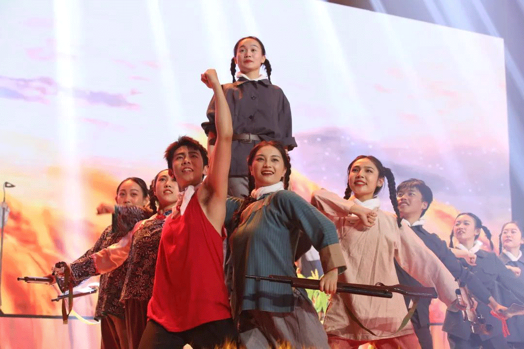 情景表演唱《游击队之歌》、情景朗诵《永恒的誓言》、合唱《祖国不会忘记》,一首首昂扬向上的旋律,一幕幕全情投入的表演,带领现场观众一同穿越历史的烽烟,重温党的光辉历程,歌颂对党对祖国的无限深情。赢得了观众的阵阵掌声。