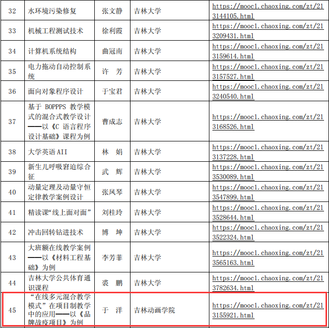 近日,吉林省教育厅下发了《吉林省本科高校2020年春季学期在线教学质量调查分析报告》,公布了吉林省本科高校抗“疫”期间112个在线教学典型案例入选名单,万象城官网于洋老师的《“在线多元混合教学模式”在项目制教学中的应用——以< 品牌战疫项目>为例》案例成功入选。