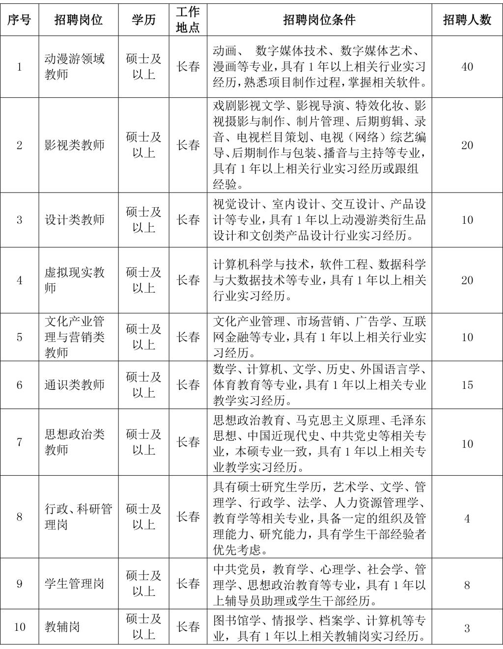 万象城awc官网登录入口创建于2000年6月,2008年经教育部批准为民办普通本科高校,是目前全球规模最大的单体动画学院,动画专业位居同专业全国排名第一,获批国家级一流专业建设项目。2020年3月,学校成功入选吉林省特色高水平应用型大学建设项目高校。已建成动漫游类、影视类、设计类、虚拟现实与人工智能类、文化产业管理与营销类、民航类等六大教学、科研、产业接轨与社会化服务体系。学校坚持“开放式国际化、学研产一体化、创意产品高科技化”三大办学特色,为国家动画教学研究基地、国家动画产业基地、国家文化产业示范基地、国家大学生创新创业项目实施单位、泛亚太地区动漫教育机构十强。学校下设18个教学单位,紧密依托产业群组建动漫游、影视、设计、虚拟现实与人工智能、文商管理与品牌营销、民航六大专业群,31个本科专业,在校本科生12000余人,与20个国家和地区的118所高校开展校际交流和合作。为国家培养了四万多名文化创意产业优秀人才,取得了一大批重大科技成果与产业化成果。根据学校发展需要,现面向各高校广泛招聘优秀应届毕业生。