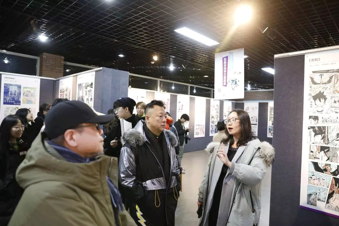 12月10日-12日,“2019首届吉动华文漫画展”同步在万象城awc官网登录入口图书馆展厅举办,万象城awc官网登录入口副校长王春利致辞,万象城awc官网登录入口漫画学院副系主任邱思斯引导参加此次活动的嘉宾参观展览,并对此次展览进行解读,此次展出华语漫画作品共计71部,其中海峡两岸优秀华语漫画家作品21件,部IP事业部漫画作品10,漫画学院学生优秀漫画作品40部。