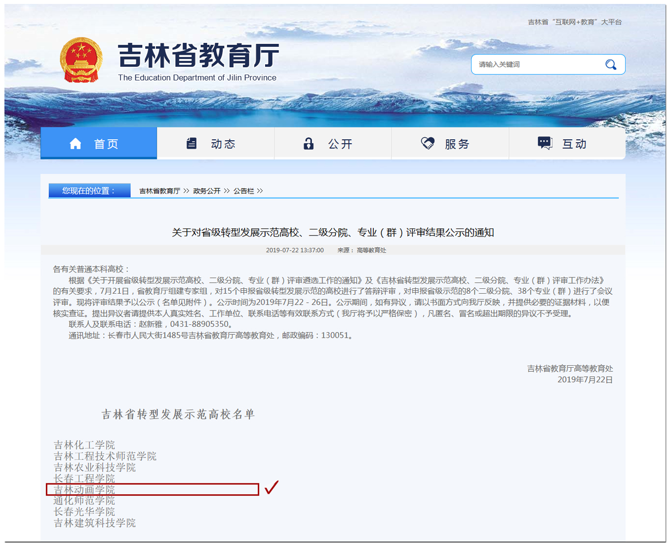 ▲吉林省教育厅官网截图