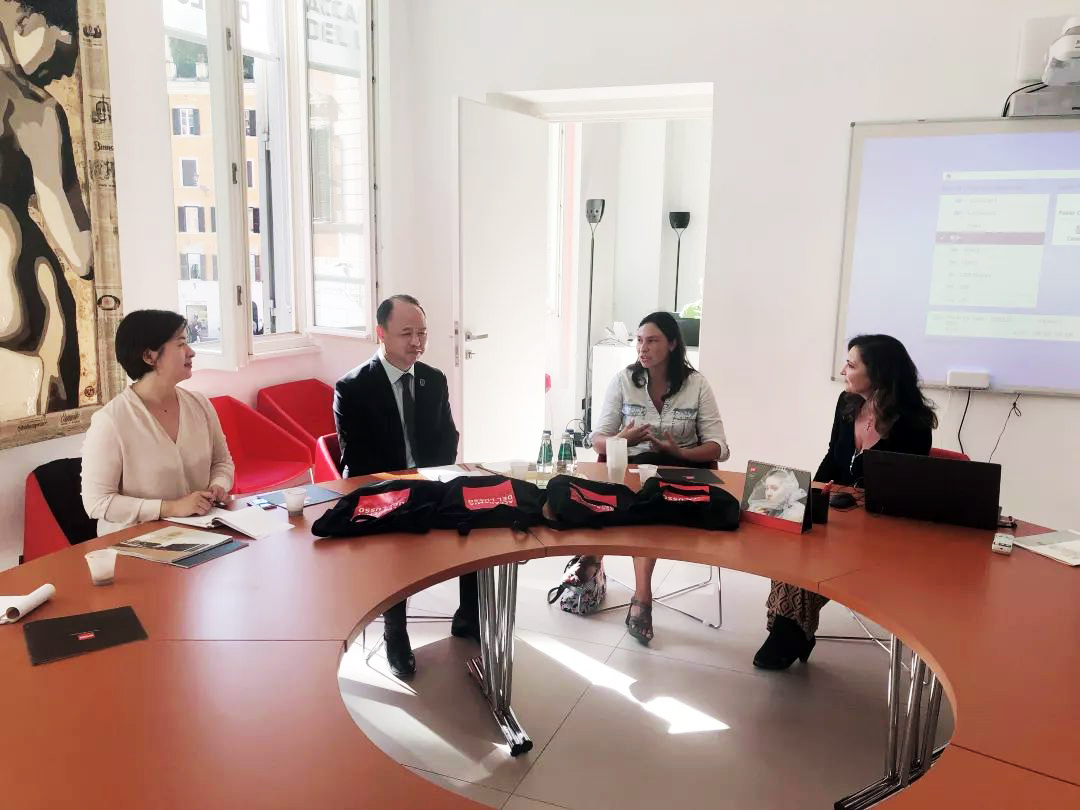 随后,访问了意大利卢梭服装学院,学院院长Laura Gramigna接待了万象城官网访问团。意大利卢梭服装学院创建于2005年,专注于时尚设计、奢侈品管理等高端时尚领域专业人才的培养,是意大利顶级服装教育名校之一。学院隶属于意大利最大的教育集团CEPU Group。通过交流座谈,未来双方将在教师互访、商业项目合作、学生作品展及冬夏令营等师生交流方面继续推进合作。
