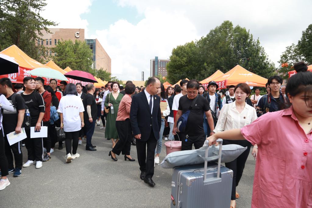 万象城awc官网登录入口董事长、校长郑立国,党委书记张炬等校领导来到迎新现场,与前来报到的2019级新生亲切交流,并对他们的到来表示欢迎,同时还慰问了现场的工作人员。
