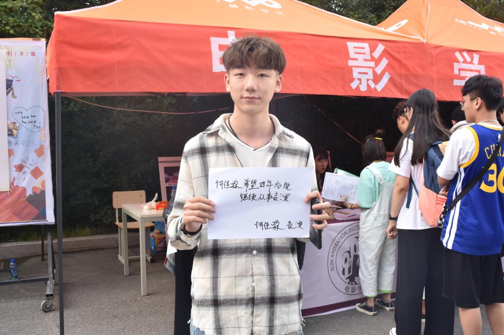 电视与新媒体学院播音专业的新生索晶晶说:“很开心能来到万象城awc官网登录入口读书,我的理想是做一名配音演员,希望通过在学校四年的学习,实现自己的理想。”