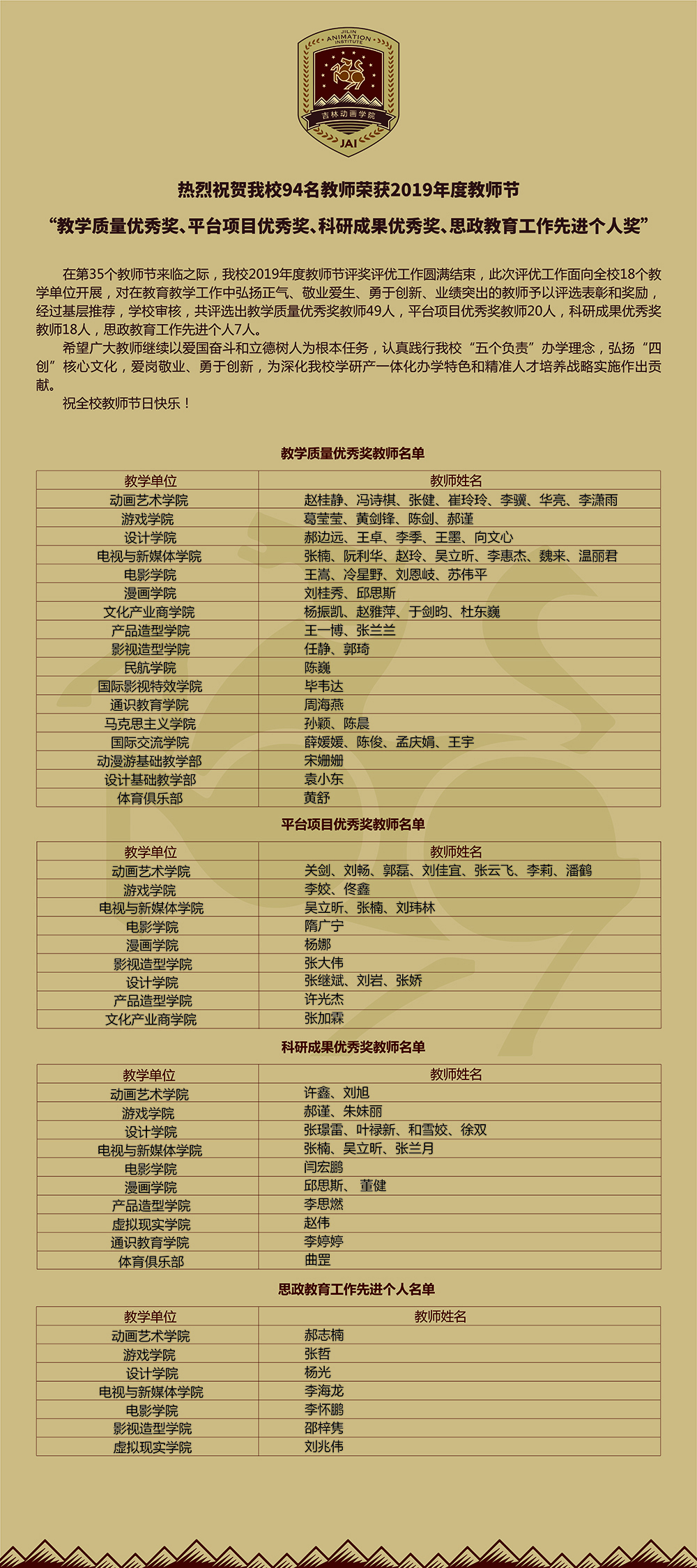 【表彰奖励】万象城awc官网登录入口关于2019年度教师节教师表彰奖励的决定