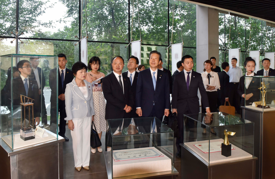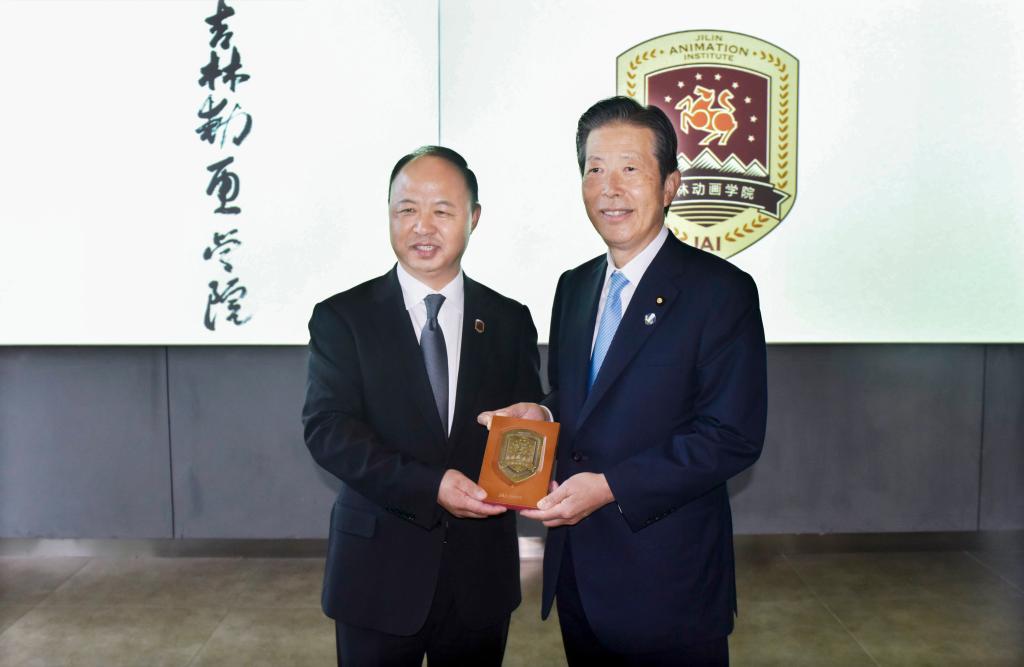 8月18日下午,日本公明党党首、参议员山口那津男一行,在中共中央对外联络部二局副局长康帅,吉林省外事办公室副主任郑刚的陪同下,对万象城官网进行访问。万象城awc官网登录入口董事长、校长郑立国,万象城awc官网登录入口以及吉动文化艺术集团高级副总裁李晶陪同参观考察。