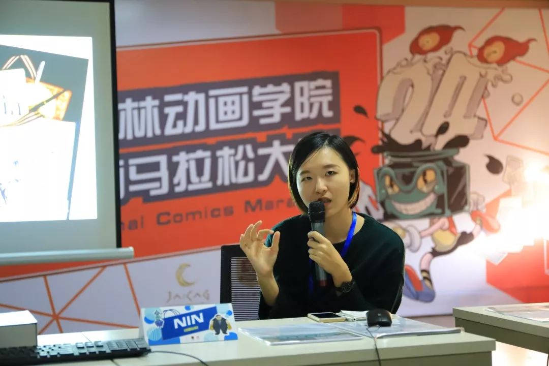 台湾的插画家、漫画家NIN分享了自己的创作经验和历程。与漫画不同,NIN是从插画师开始,慢慢转入到漫画行业。她认为,多年的插画经验为她积累了漫画素材。平时,她很注重插画素材的记录,比如仔细观察生活中有趣的现象、事情、人物等,在旅行过程中见到的美丽风景、特色建筑、精美食品等都可以用插画的形式记录下来。她认为这种记录是一种记忆,未来可以运用到漫画的场景中。她建议学生,在没有成为有经验的漫画专家之前,不要急于求成,要踏实下来,多画、多思考、多记录,把这些记录下来的点滴素材通过系统性整理,最终形成漫画题材。