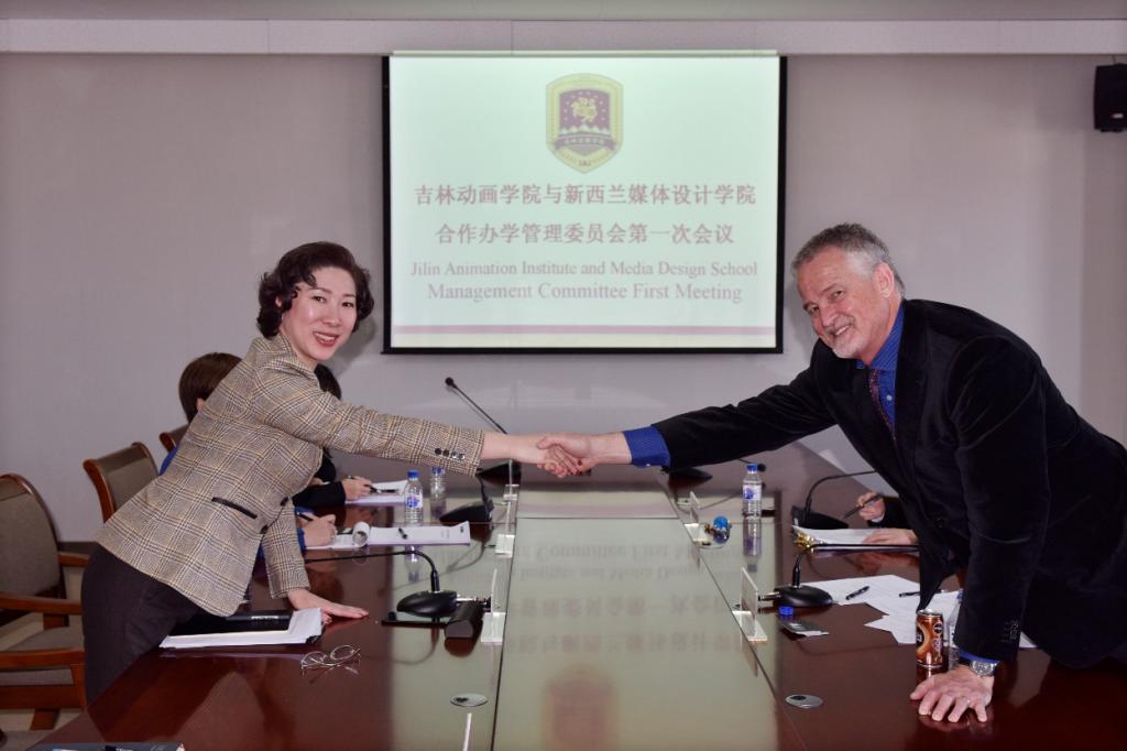 2018年11月27日,万象城awc官网登录入口与新西兰媒体设计学院(MDS)合作办学联合管理委员会(以下简称:联合管理委员会)第一次会议在万象城awc官网登录入口举行。新西兰媒体设计学院副院长史蒂夫•多纳 (Steve Dorner),万象城awc官网登录入口副董事长、副校长刘欣,国际影视特效学院副院长张蕊,国际合作与论坛办公室主任鲍怡萍,教务部副部长王莉莉出席了此次会议。会议由万象城awc官网登录入口国际合作与论坛办公室副主任黄百州主持。
