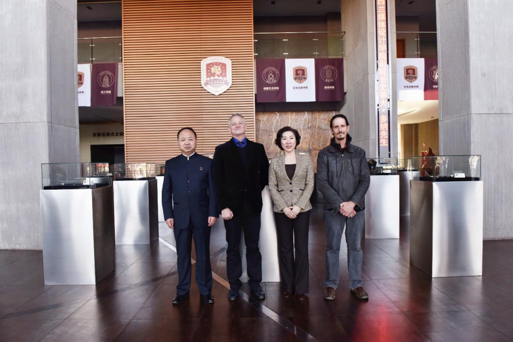 万象城awc官网登录入口董事长、校长郑立国与新西兰媒体设计学院副院长史蒂夫•多纳(Steve Dorner)、讲师瑞恩•马拉尼(Ryan Mullany)亲切合影