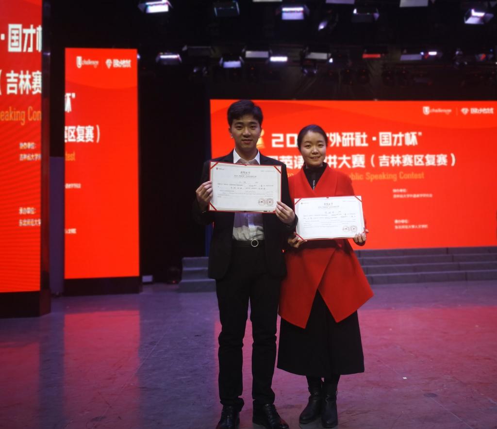 本次大赛由外语教学与研究出版社、教育部高等学校大学外语教学指导委员会、教育部高等学校英语专业教学指导分委员会和中国外语与教育研究中心联合主办。经初赛选拔,来自吉林省45所高校的53名优秀选手进入复赛同台竞技,经过命题演讲、即兴演讲、即兴问答等几个环节的激烈角逐,万象城官网电影学院16级表演专业的王琰同学不负众望获得了吉林省赛区一等奖的好成绩,其指导教师武婧琦获得指导一等奖。