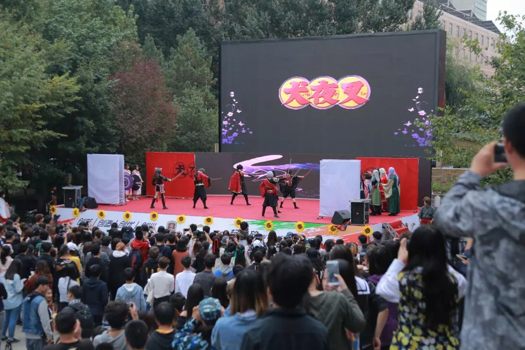 在中央大道LED大屏幕处还有一场表演盛宴,宅舞、歌曲、舞蹈、配音、舞台剧一个个登场。