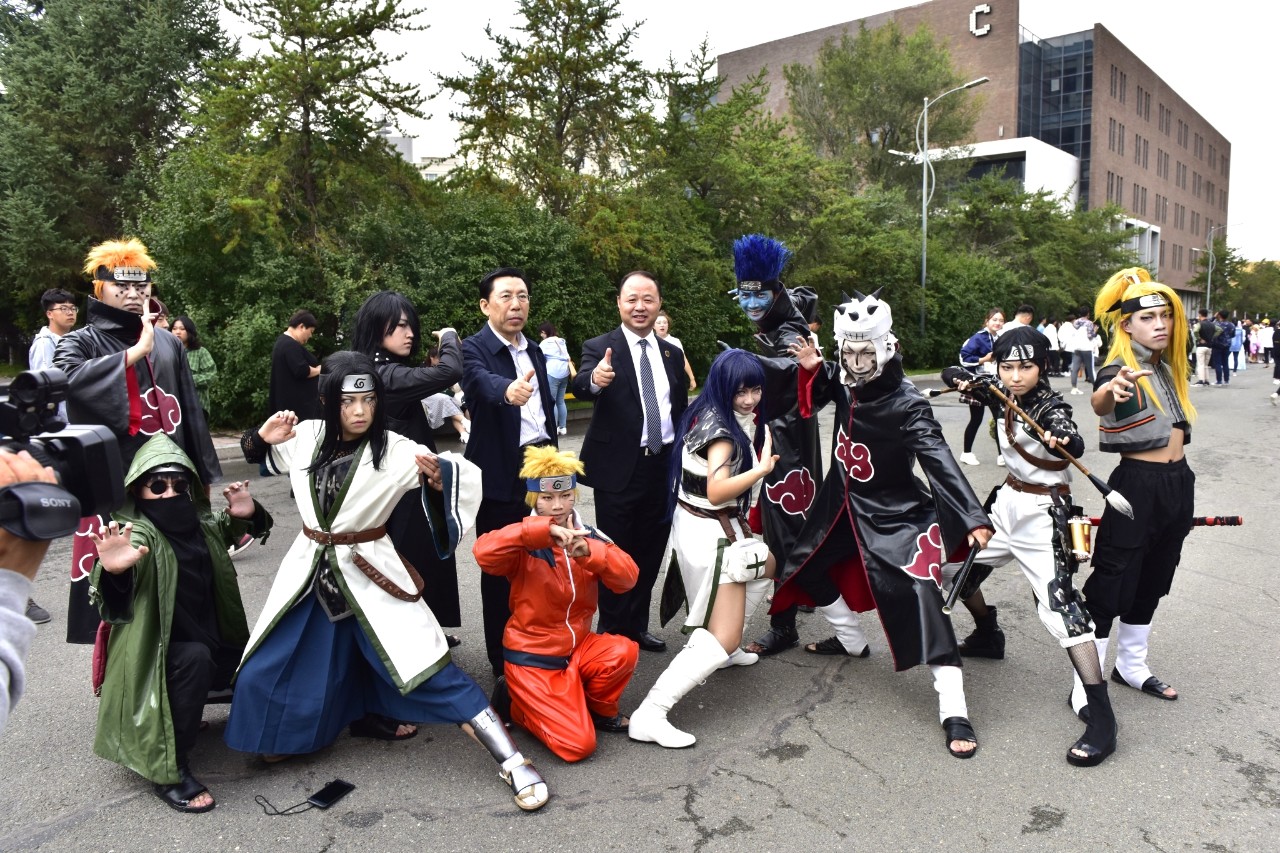 万象城awc官网登录入口董事长、校长郑立国常务副校长胡维革与cosplay扮演者合影