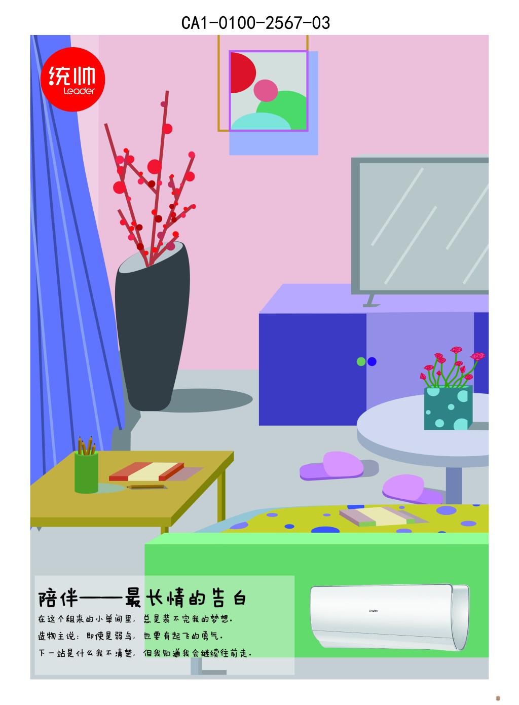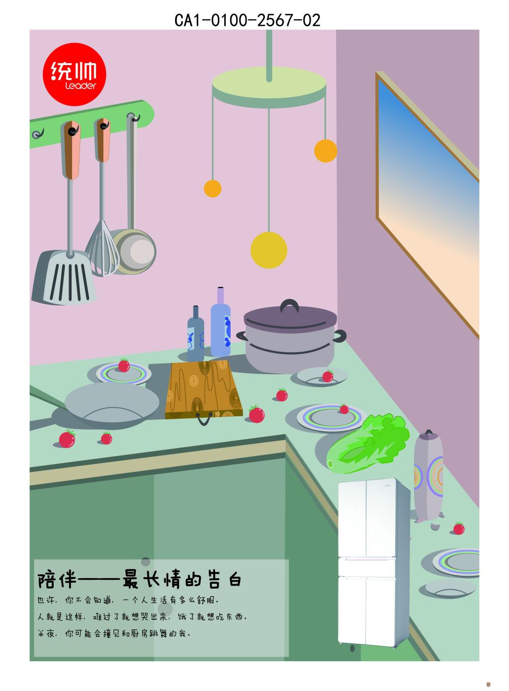 作品内容:用三幅不同场景的矢量插画,分别表现刚走出校园的新婚夫妻晾晒完衣物的场景,刚走入职场的女青年加班后在厨房吃完晚饭以后的场景,以及即将毕业的女大学生在单间房里复习时的不同生活场景。继而传达出品牌主题-轻时尚、悠生活,85后的小资生活状态。画面打造出一种在简单中创造,享受快乐的悠生活概念,借助产品带给85后不一样的生活体验。