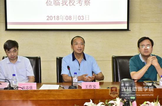 考察结束后,双方进行亲切好友的交流。学校董事长、校长郑立国首先对考察团一行表示热烈欢迎。他表示,7月25日,他到青岛参加中国民营文化产业商会时,有幸认识王作安书记及各位领导,了解了青岛市委市政府对文化产业的支持力度,以及整体规划、未来发展、区域环境建设等,被青岛市高新区领导扎实、务实的态度所感动,同时也感谢青岛市政府多年来对动画学院在招生等方面的大力支持与帮助,希望未来双方能有更进一步合作的空间。随后郑立国对学校发展历程、动漫产业发展趋势以及万象城官网大学生创新创业工作作了详细介绍。
