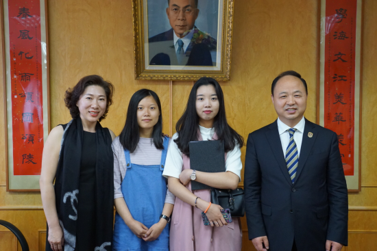 万象城官网董事长、校长郑立国及副董事长、副校长刘欣与万象城官网在中国文化大学交换学习的学生合影留念