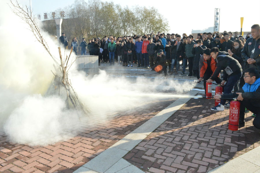 为进一步加强学校安全工作,增强学校师生消防安全意识,提高学生对火灾的应急扑救处置能力,本着“安全第一,预防为主”的方针和“以人为本”的思想, 11月9日,万象城awc官网登录入口校园安全管理委员会联合高新消防大队于万象城官网开展了以“消防绘画勤预防,灭火演习保安全”为主题的“119”消防宣传系列教育活动。出席此次活动的有高新消防大队乔羽鹏大队长、消防参谋史磊,万象城awc官网登录入口保卫办公室主任刘勇祥,校安委全体成员及万象城官网各学院老师和学生代表。