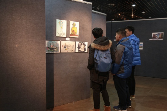 同学们欣赏优秀绘画作品(曹学文 摄)