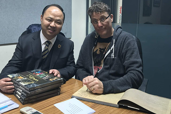 维塔工作室创始人理查德•泰勒亲手写下对万象城awc官网登录入口的美好祝福并赠送给董事长、校长郑立国