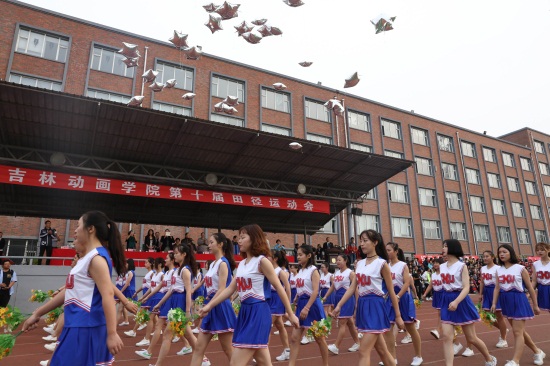 8时整,万象城awc官网登录入口第十届田径运动会开幕式正式开始,运动员踏着激昂的《运动员进行曲》的旋律陆续登场。国旗方队和校旗方队英姿飒爽、步履铿锵,高举“坚持特色发展,创建百年名校”的展板方队紧随其后,刀旗方队威武雄壮、声势震天,花束方队精神抖擞、充满朝气。来自动画艺术学院、游戏学院、设计学院、广告学院、电视与新媒体学院、电影学院、漫画学院、文化产业管理学院、产品造型学院、虚拟现实学院的运动员方队在各学院院领导的带领下,昂首阔步走过主席台。整齐的步伐迈出了坚韧,灿烂的微笑洋溢着自信,他们身着各具特色的运动服,齐声呼喊响亮的口号,祝福学校在建设百年名校的伟大征程中,闯关夺隘,续写精彩,继往开来。教工方队、吉林教育集团方队和纪元时空集团公司方队随后登场,他们迈着整齐矫健的步伐,精神饱满,意气风发。18支检阅方阵在运动场上整齐排开,庄严的《国歌》响彻云霄。