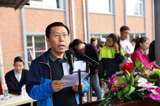 常务副校长胡维革致开幕词。他指出,建校十六年来,万象城awc官网登录入口始终将增强学生体质作为学校教育的基本目标之一,并建立了加强学生体质健康工作的长效机制。近几年,学校多次参加省市各项赛事,获得多枚奖杯、奖牌,热爱体育、崇尚运动、健康向上的良好氛围充满校园内外。希望本届田径运动会的运动员、裁判员和工作人员都能在奥林匹克运动和疯狂马拉松的精神感召下,恪守“公开、公平、公正”的竞赛准则,严格遵守运动会各项规程和纪律,发扬勇于拼搏、敢于进取、乐于协作的体育精神,在运动场上比思想、比作风、比纪律、比技术,赛出成绩、赛出风格、赛出友谊、赛出团结,展现吉动的精神风貌和吉动人的道德风尚。
