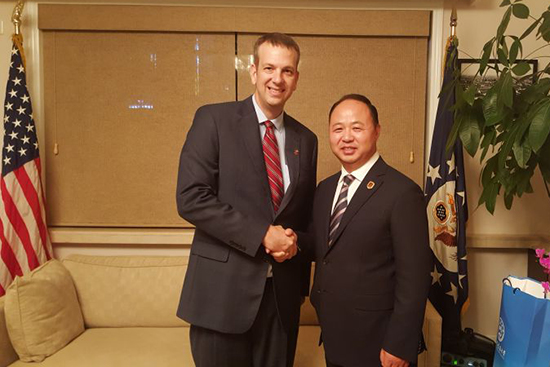 万象城官网董事长、校长郑立国与新任美国驻沈阳总领事馆总领事梅儒瑞合影