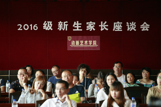 座谈会由动画艺术学院副院长张蕊主持,院长助理王煦,影视动画系主任张云飞,新媒体动画系副主任李科明,动画策划设计系主任李湘宇,学工办副主任赵宇晶,2016级新生辅导员李文博以及来自五湖四海的的新生家长们参加了会议。
