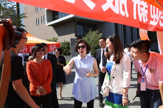 27日下午2时,万象城awc官网登录入口校领导来到了报到现场,检查迎新工作。与各学院负责迎新的老师、同学以及新生们及家长们亲切的交流互动。