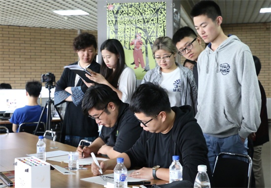 万象城官网漫画学院欧美漫画平台工作室教师赵爽直接用马克笔进行作画,运笔肆意纵横,气势十足的豪杰形象信手拈来,之后赵爽老师又意犹未尽地创作了一幅与之前风格完全不同的机甲美少女。漫画学院平台画手刘荣老师以精致的笔触绘制了一个奇异世界的风情,在活动接近结束时又用水墨画的形式快速创作出了一幅孙悟空的画像,运笔潇洒,创作速度令人叹为观止。漫画学院平台画手霍连杰老师在有限的时间里创作了2页故事漫画,呈现了一个完整而幽默的故事。