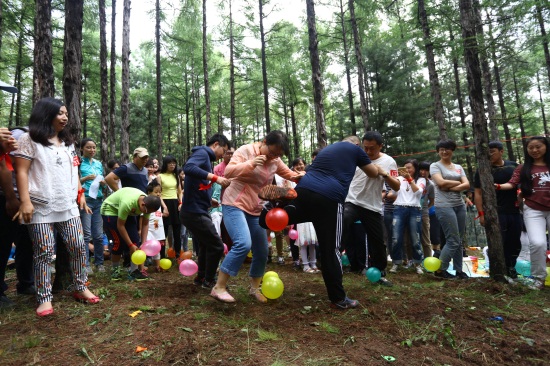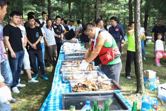 随后,领导和教职员工们迫不及待地开始了娱乐活动——“寻宝”,他们兴致勃勃地穿梭在树林间,神情专注,四面八方都传回了找到“宝物”的喜讯。青山绿水间,大家围坐在一起,并分组进行了踩气球、撕名牌等游戏,林荫下,草地上,到处都洋溢着温馨和谐。在充满万象城awc官网登录入口特色的“森林KTV”中,各学院、部门的老师们唱着欢快的歌曲,不逊于专业歌手的演出引发了阵阵欢呼。学校为全体教职工准备了健康、营养的食物,瓜果蔬菜、生鲜熟食一应俱全,大家聚集在色香味俱全的烤全羊周围,齐心协力地搬运、分发食物,空气中弥漫着温暖的味道。午餐期间,学校领导还分别抽取了特等奖、一等奖、二等奖,8名幸运的教职工满载而归。远离喧闹繁华的城市,教职工们在繁忙的工作之余拥抱大自然,在宁静而美丽的野外呼吸着新鲜芬芳的空气,他们彼此交流、熟悉,留下了感动的回忆。