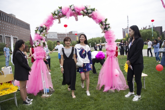 熟悉的场景,熟悉的校园,毕业生们在签名墙前合影留念,把大学里最大的愿望投进许愿箱,携手走过拱门,那边等着摄影师按下快门,这边同学互相整理学士服;那边几人围坐草地相谈欢闹,这边几人在镜头里留下青春的容颜……