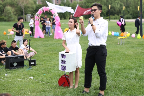 辅导员张帆老师和学生高玉芯共同为大四毕业生献上的《同桌的你》吸引了大家的视线,典礼正式开始。主持人以风趣幽默的语言,打开许愿箱里一个又一个的愿望。