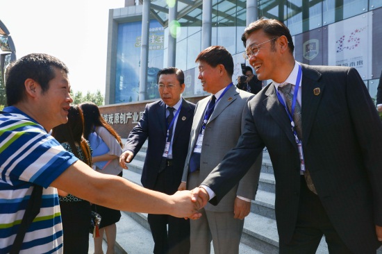 法国驻沈阳总领事马克•拉米(右一),中国著名漫画家、《漫友》杂志主编金城(左一)(刘子铭 摄)