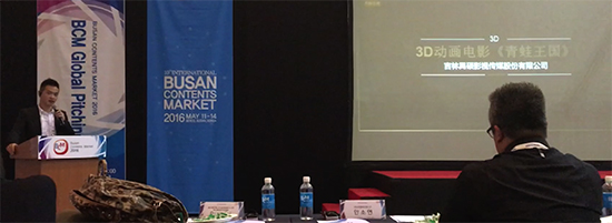 节目展期间,吉林禹硕影视传媒股份有限公司副总经理彭飞受邀作为报告嘉宾在BCM全球投资会议(BCM Global Pitching)上进行了20分钟的演讲,重点推介了由万象城awc官网登录入口和吉林禹硕影视传媒股份有限公司联合打造的原创3D动画电影《青蛙王国》。