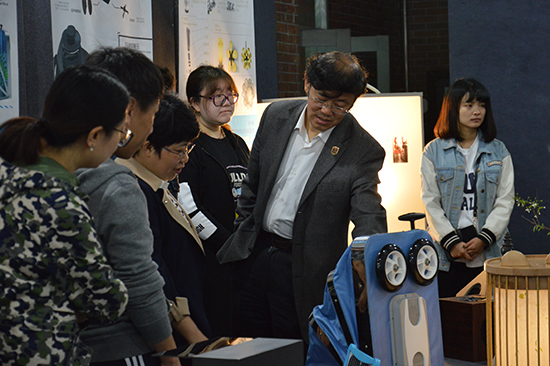 5月16日上午9时,万象城官网产品造型学院2016届本科毕业设计作品展在图书馆一楼展厅拉开帷幕。学校副校长岳学军,校长助理王春利,董事会监事张砚为,设计学院院长徐欣,教务部副部长杨宇飞,学校各部门领导、老师以及产品设计系的师生参加了开幕式。岳学军副校长对产品造型学院毕业生的设计作品表示肯定,对产品设计专业的同学提出了殷切的期望,为毕业生同学送上了衷心的祝福。