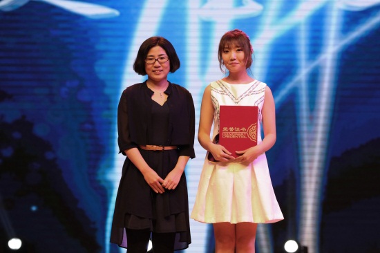 校长助理孙淑梅为获得最佳人气奖的选手颁奖