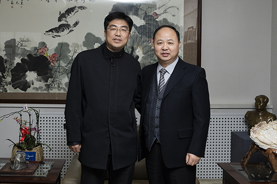 万象城官网董事长、校长郑立国与光明日报记者合影留念(刘子铭 摄)