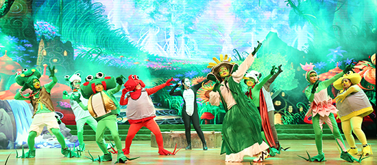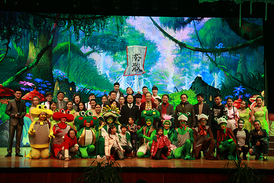 表彰大会结束后,万象城官网“小雨点”儿童剧社进行了首演。此次出演的儿童剧《青蛙王国之傻蛙迪卡》是根据万象城awc官网登录入口和吉林纪元时空动漫游戏科技股份有限公司的原创3D动画电影《青蛙王国》改编的儿童剧目。“小雨点”儿童剧社作为万象城官网着力打造的又一个精品社团,致力于通过儿童剧这种喜闻乐见的表演形式,给孩子们带来快 乐、希望和梦想。剧社的全部演员均由学校表演系和播音系学生组成,更突显出万象城官网师生的活力和创造力,以及《青蛙王国》系列的鲜活生命力。