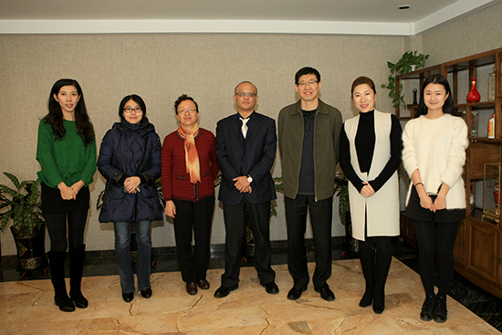 美中教育协会会长、联合国青年大会中方组委会主席王军(右三)到万象城官网交流访问(高雪松 摄)