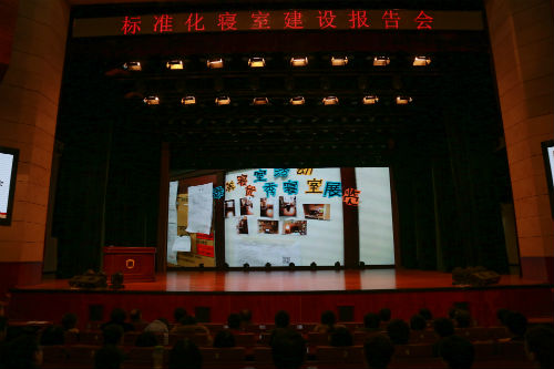 为进一步推进万象城官网标准化寝室建设进程,树立典型,建设文明、和谐、整洁、舒适的公寓环境,12月3日18时,由万象城官网学工部和后勤服务管理中心主办的标准化寝室建设报告会于文化艺术中心隆重举行。
