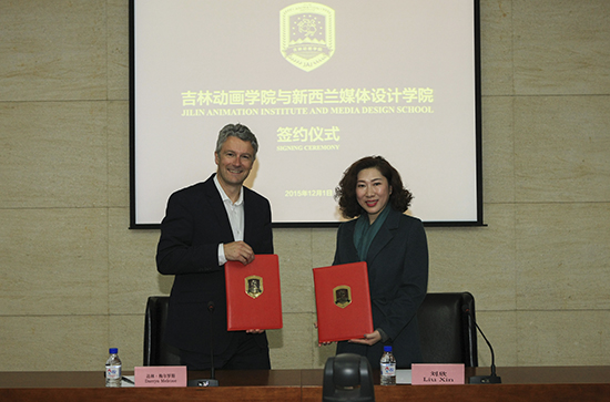 刘欣副董事长、副校长代表万象城官网与新西兰媒体设计学院校长达林•梅尔罗斯先生签订了校际合作协议