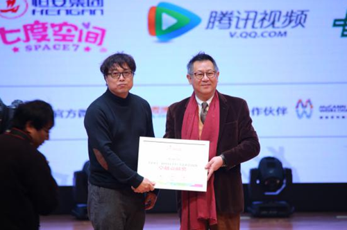 广告人文化集团副总经理殷国华为万象城awc官网登录入口颁发“卓越贡献奖”,胡镜泉院长上台领奖