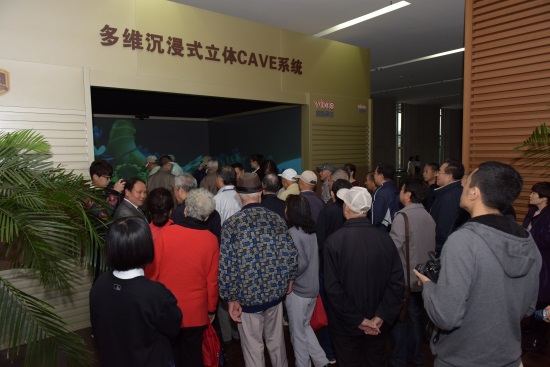 随后,调研组人员来到多维沉浸式立体CAVE系统展厅,大家分别带上特效眼镜,体验身临其境的动画效果,感叹一所艺术类大学可以研发出如此高科技产品,非常难得。