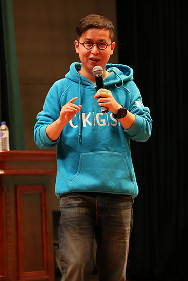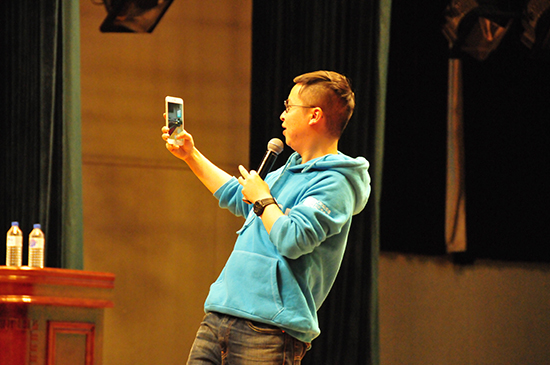 18时,巡讲正式开始。新东方讲师夏鹏通过丰富的教学经验、教师培训经验以及自身经历与感悟,展开了一场别开生面的新生学习规划培训演讲。他结合自己在大学的生活,对青春、梦想,做出了独特的诠释,同时也对如何才能不虚度光阴、如何才能过有益的大学生活,做出了自己的解释。他还在现场用英语即兴模仿了《I have a dream》、《阿甘正传》、四六级听力考试录音等内容,获得了现场的阵阵掌声。